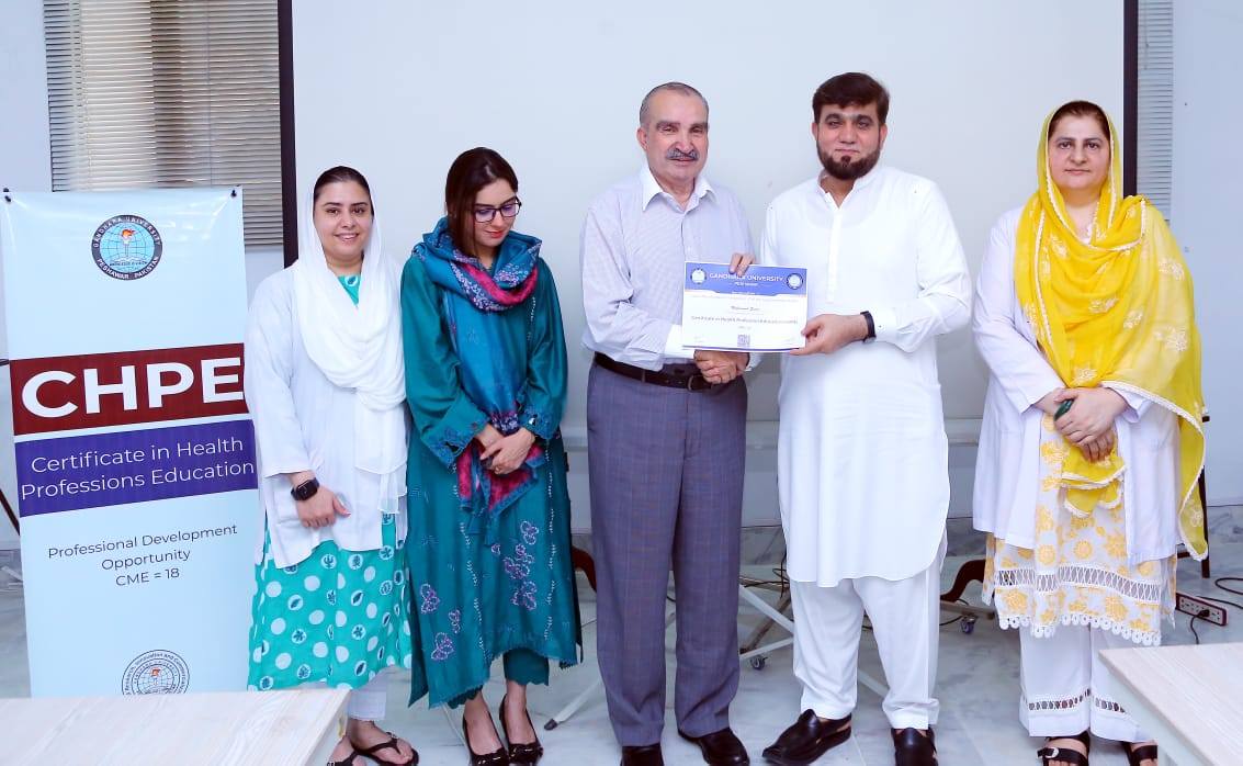 Gandhara University is proud to announce the successful completion of its first-ever batch of the Certificate in Health Professions Education (CHPE) program—a significant step forward in advancing medical education in Pakistan. The CHPE program was designed to equip faculty and healthcare educators with essential skills in curriculum design, assessment, instructional strategies, and educational leadership. Participants from diverse healthcare backgrounds demonstrated strong commitment, critical thinking, and a passion for professional growth throughout the course.